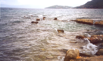 Τμήμα του μόλου στη σημερινή παραλία και μέσα στη θάλασσα