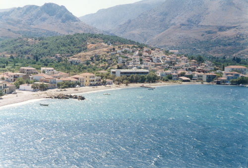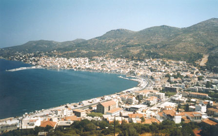 Πανοραμική θέα τμήματος της πόλης της Πάτμου και της παραλίας