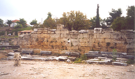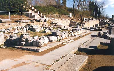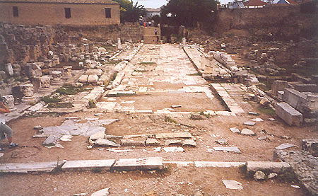 Το βήμα της Ρωμαϊκή Αγορά όπου μίλησε ο απ. Παύλος (διακρίνονται οι τρύπες για τοποθέτηση προστατευτικών πασάλων και σχοινιών)