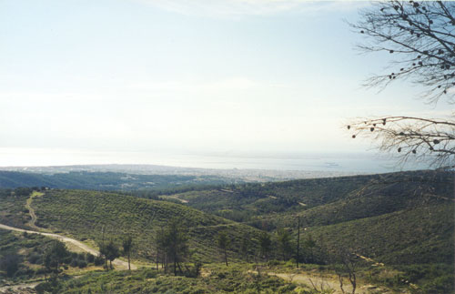 Μερική άποψη της σημερινής Αθήνας από το όρος Αιγάλεω (τέρμα αριστερά διακρίνονται τα βόρεια προάστια)