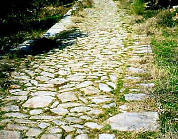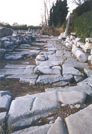 Η Εγνατία οδός δίπλα στη Ρωμαϊκή αγορά. Διακρίνονται χαραγμένες γραμμές από τις ρόδες των κάρων